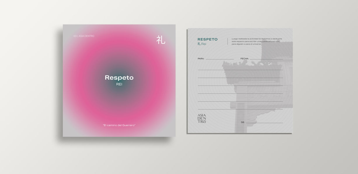 Buscamos reconectar a los jovenes con las virtudes que busca trasmitir el “bushido”. Queremos que esten conectados con el presente, es por esto que utilizaremos los sentidos para que esten en contacto con su realidad. También es un proceso de introspección de la persona que entra para que “Asia dentro” es un viaje al interior de cada uno, atravesado por la cultura oriental. Liberarse de los prejuicios, probar cosas nuevas.